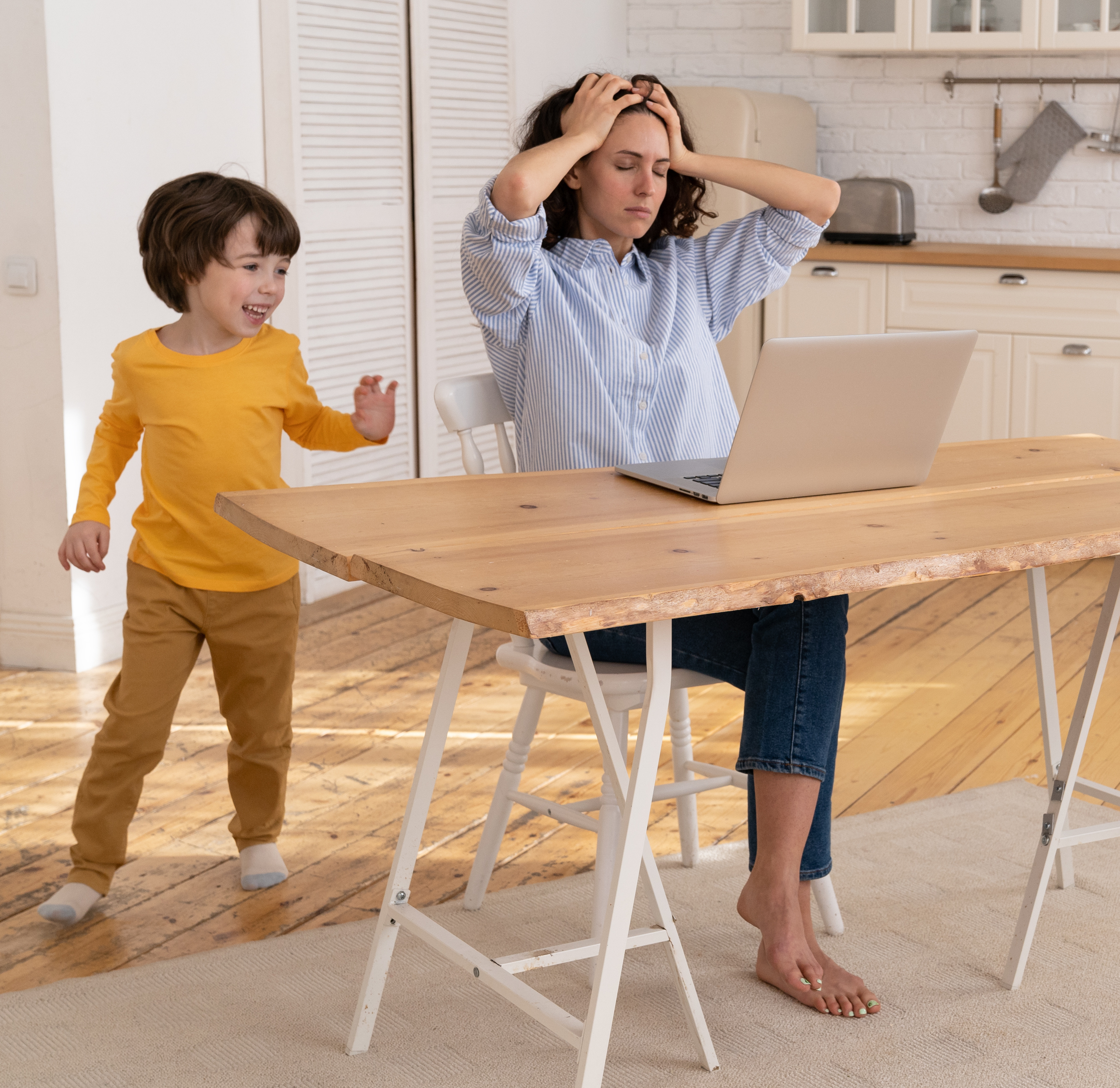 You’ll notice annoyance or impatience, but take a deep breath and look past your judgments (“Why can’t he just behave?!”) to the fears behind your anger ("What if he's still doing this when he's 20?... If I were a better parent, this wouldn’t be happening… Will I ever get my own needs met?”). Then, notice that part of this is that you're running on empty and feeling resentful. This isn't all about your child.